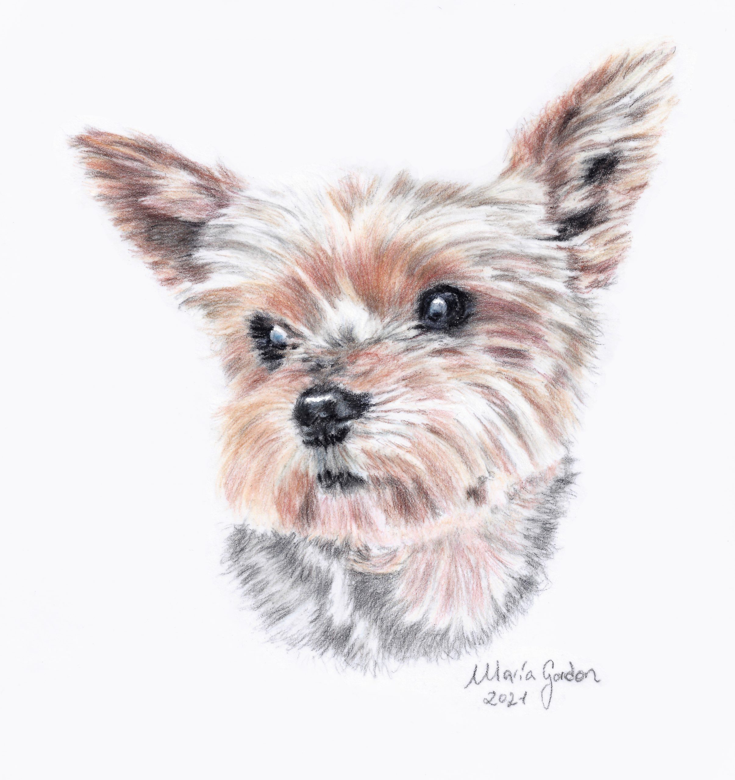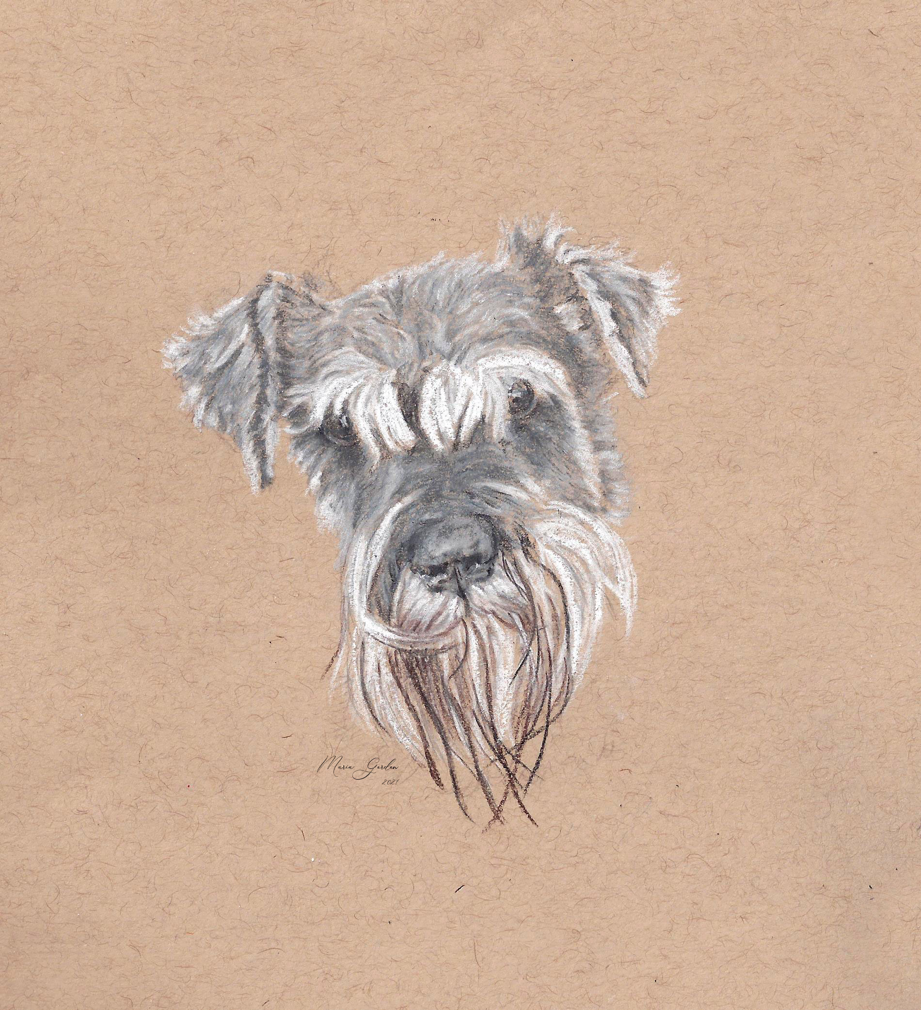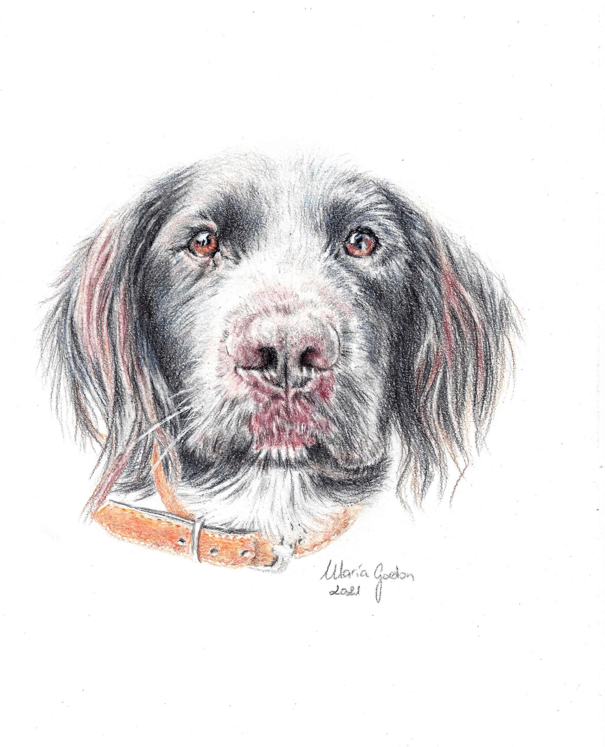 Una vez que tenga una buena fotografía de referencia, puedo comenzar a dibujar el Retrato de su Mascota. Aquí es donde puedo ser creativa y experimentar con diferentes estilos y técnicas hasta que encuentre el estilo que funcione mejor para usted. Puedo usar lápices de grafito o de colores pastel.