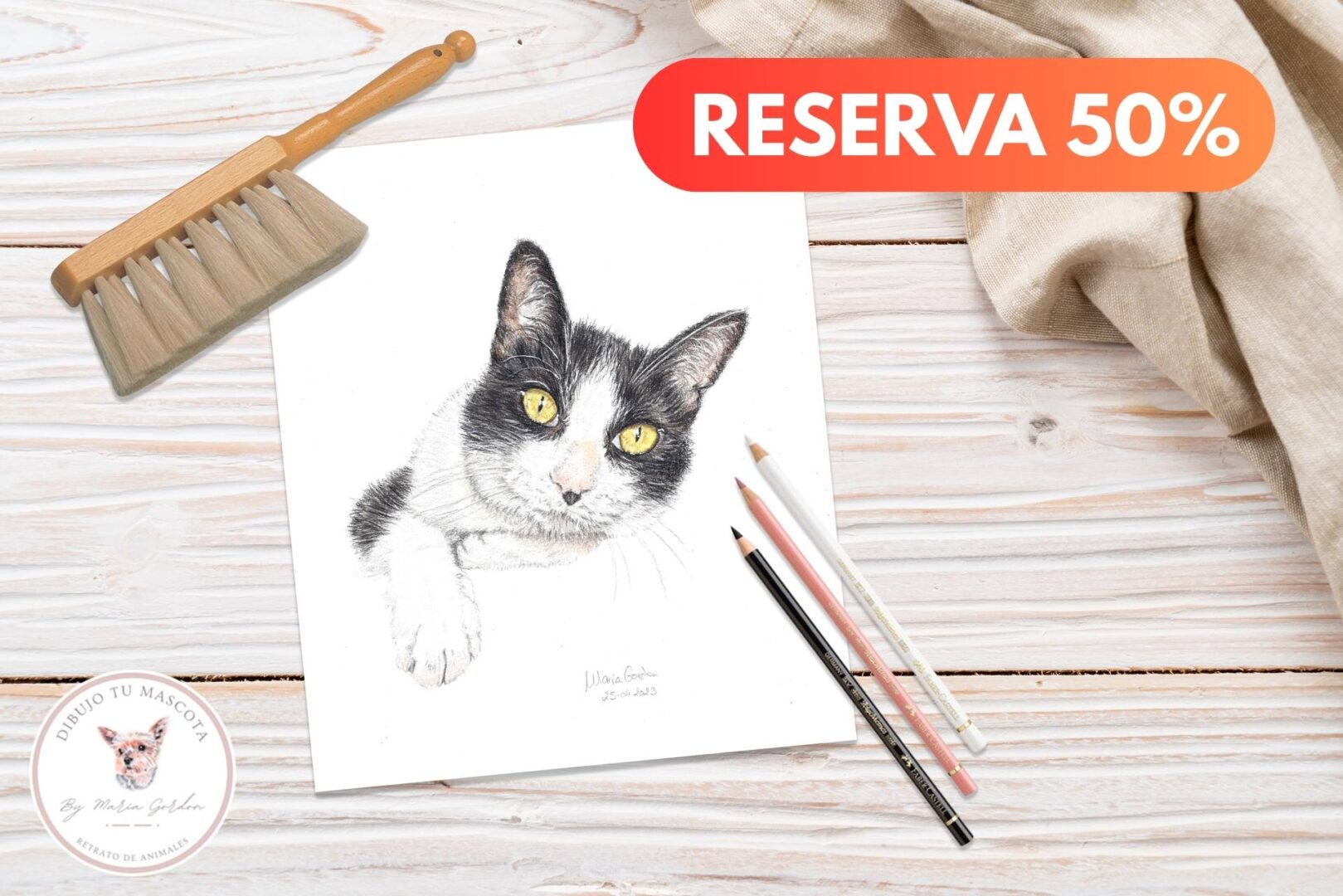 Para poder organizar todo y dedicarle el tiempo que merece a tu dibujo, el primer paso es realizar la reserva del 50% del encargo.