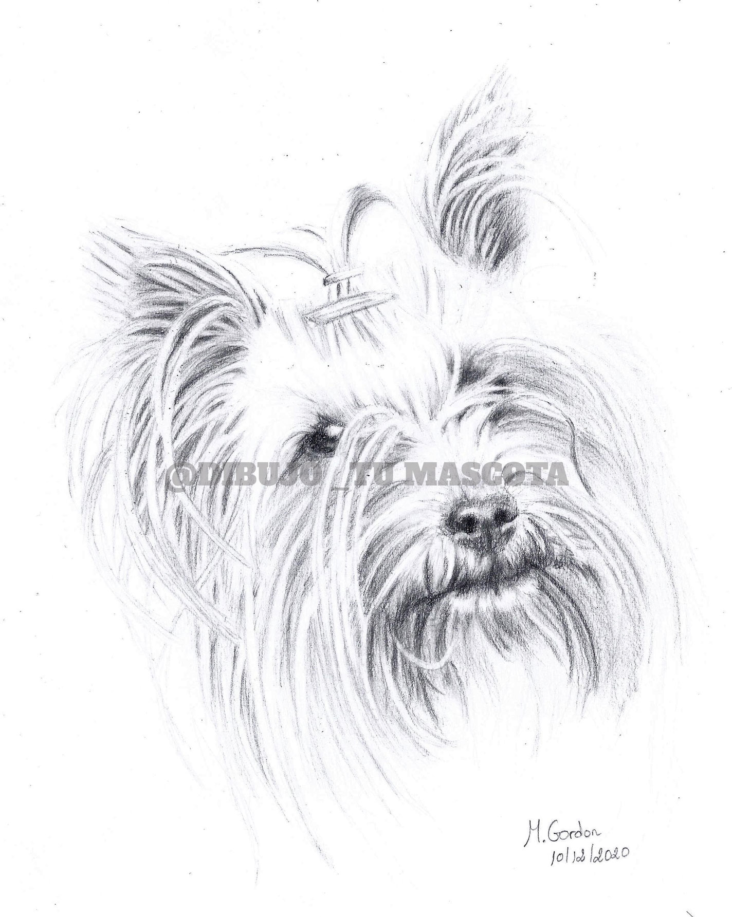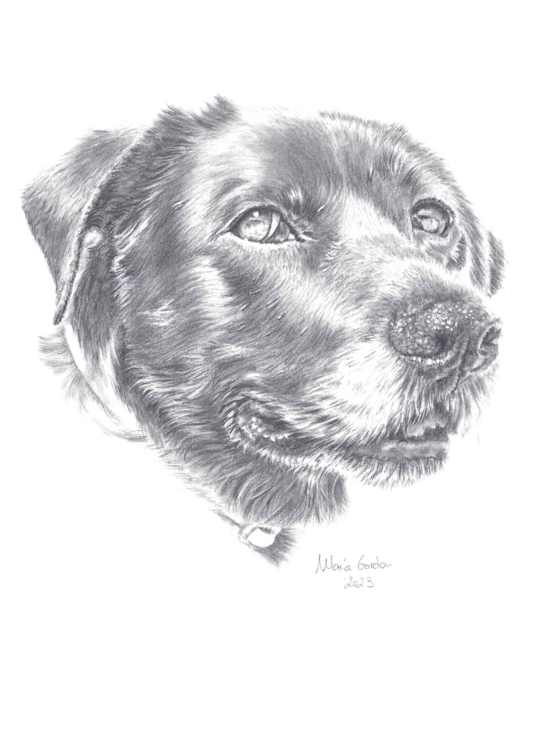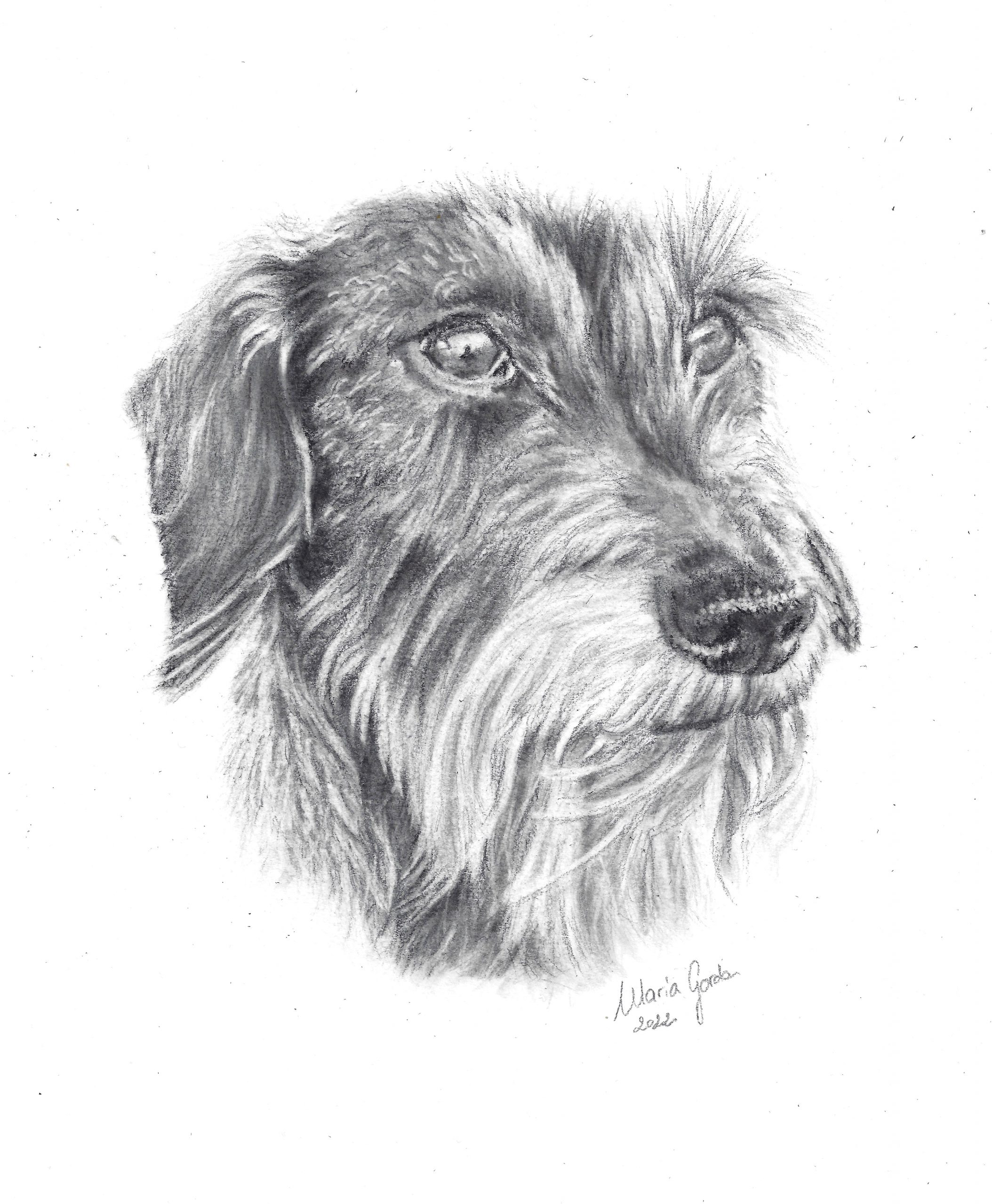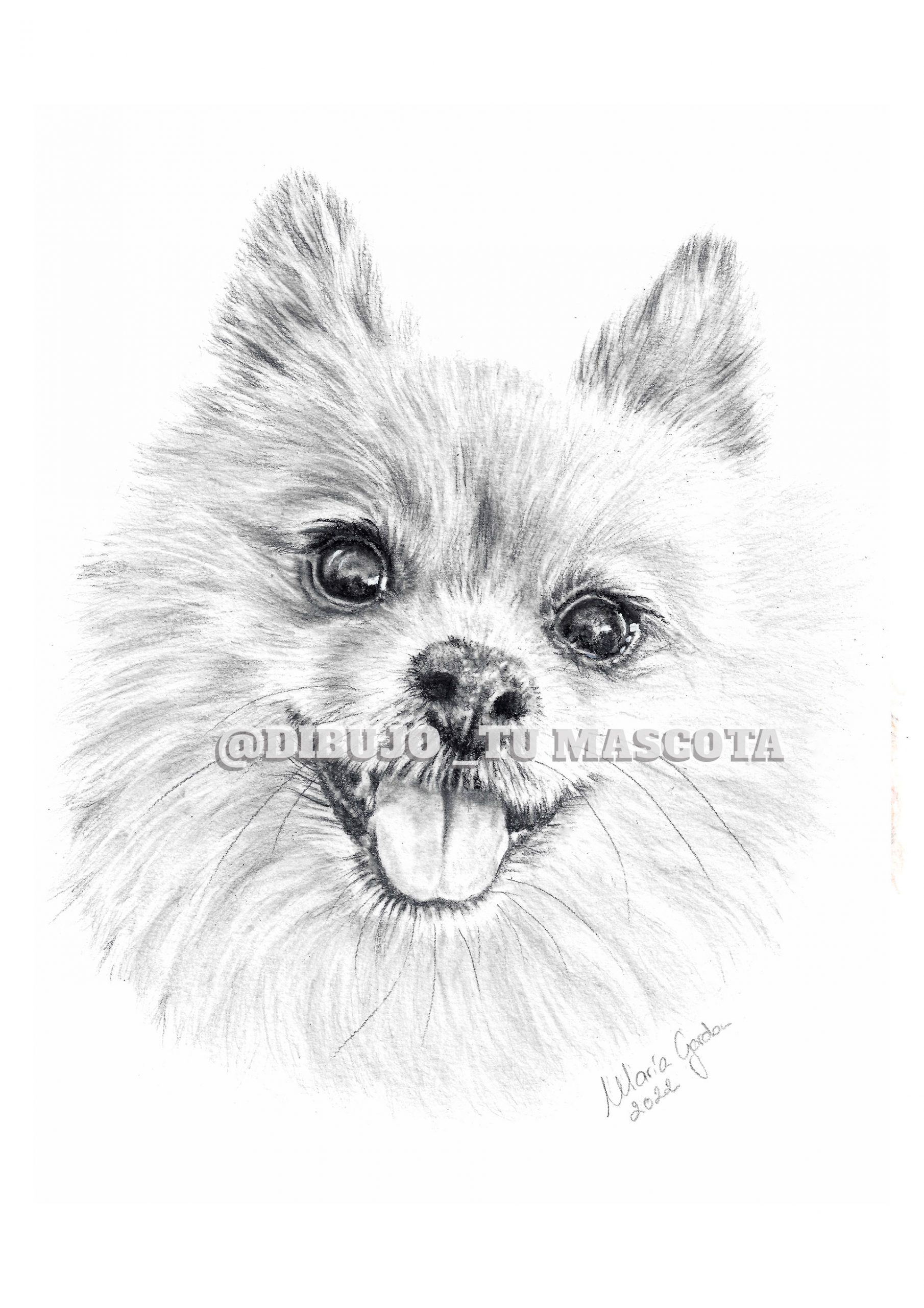 Retrato mascota lápiz grafito hecho a mano