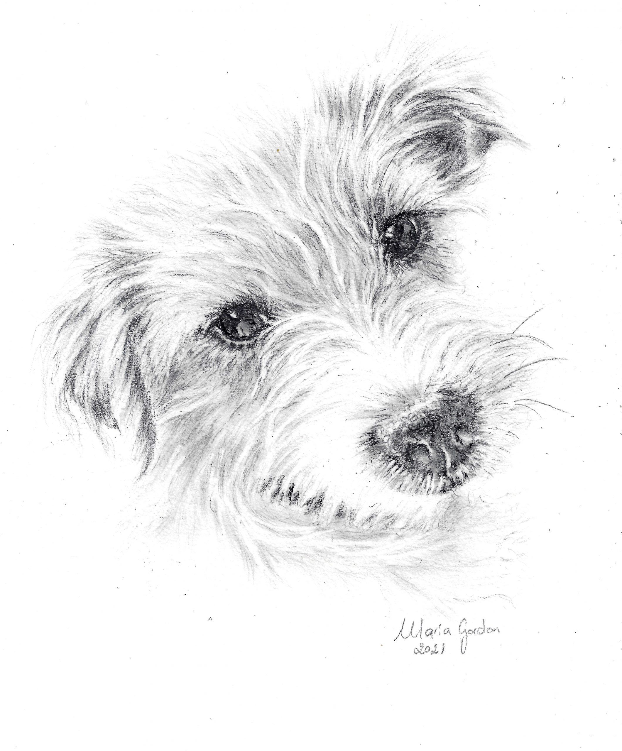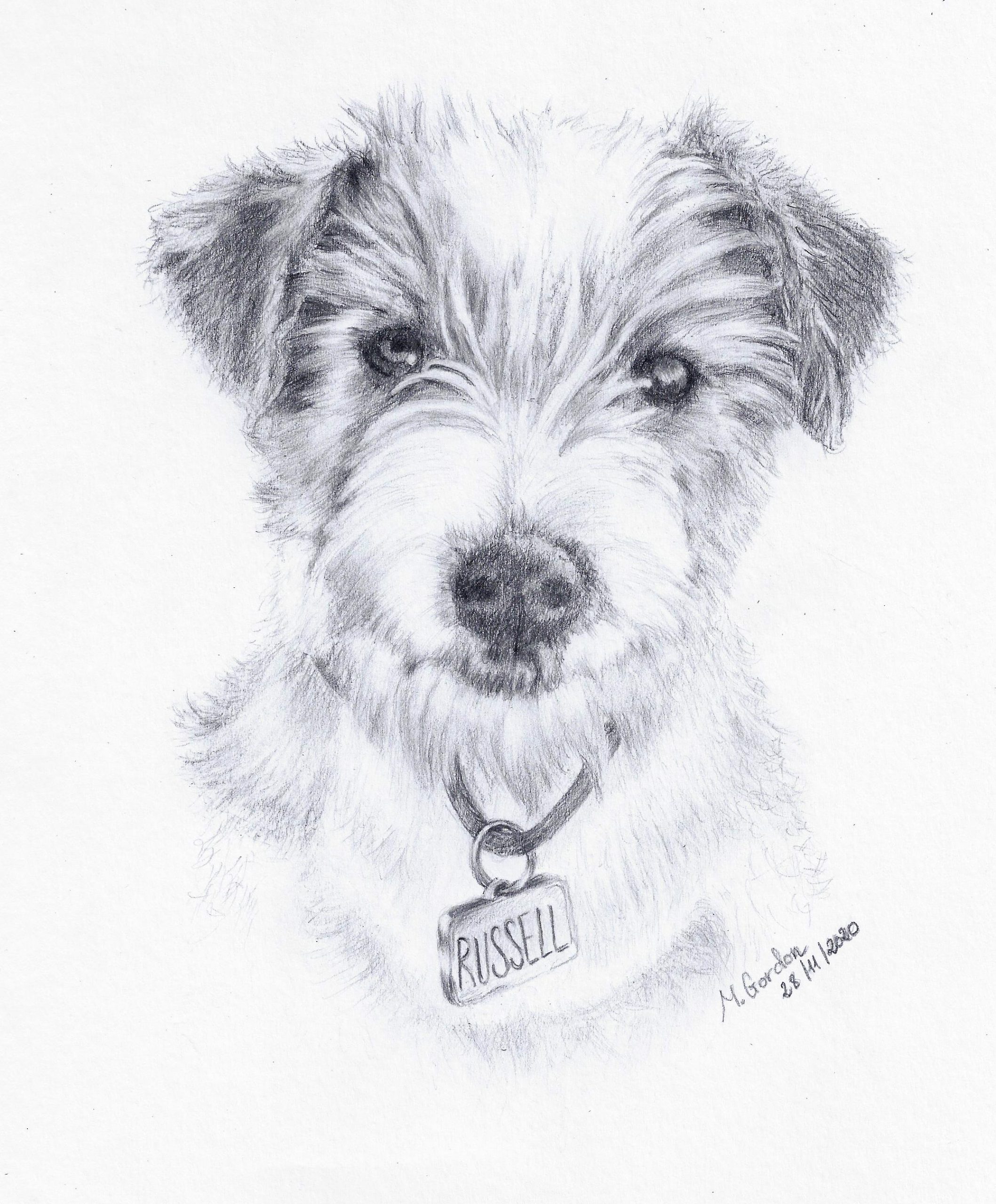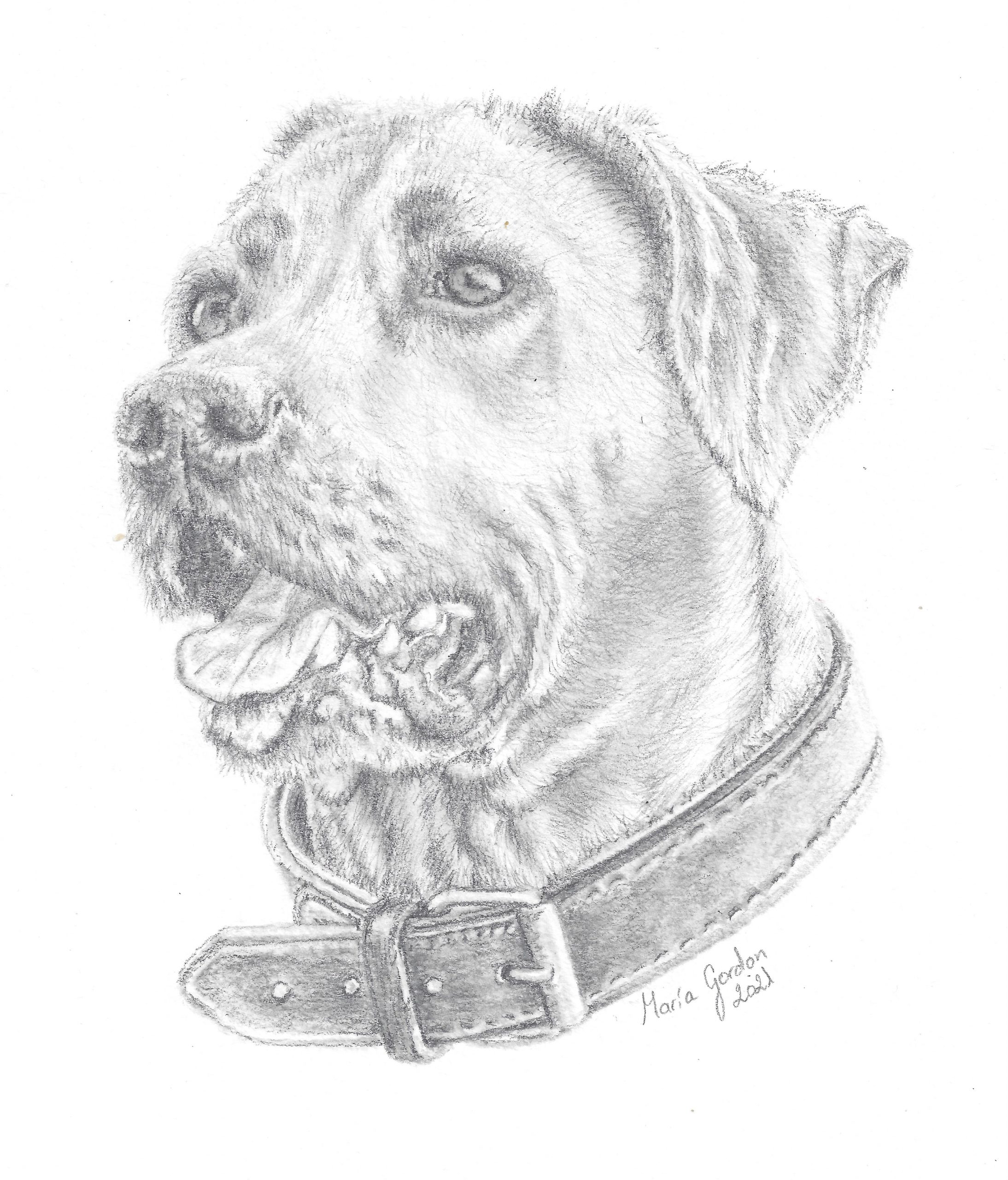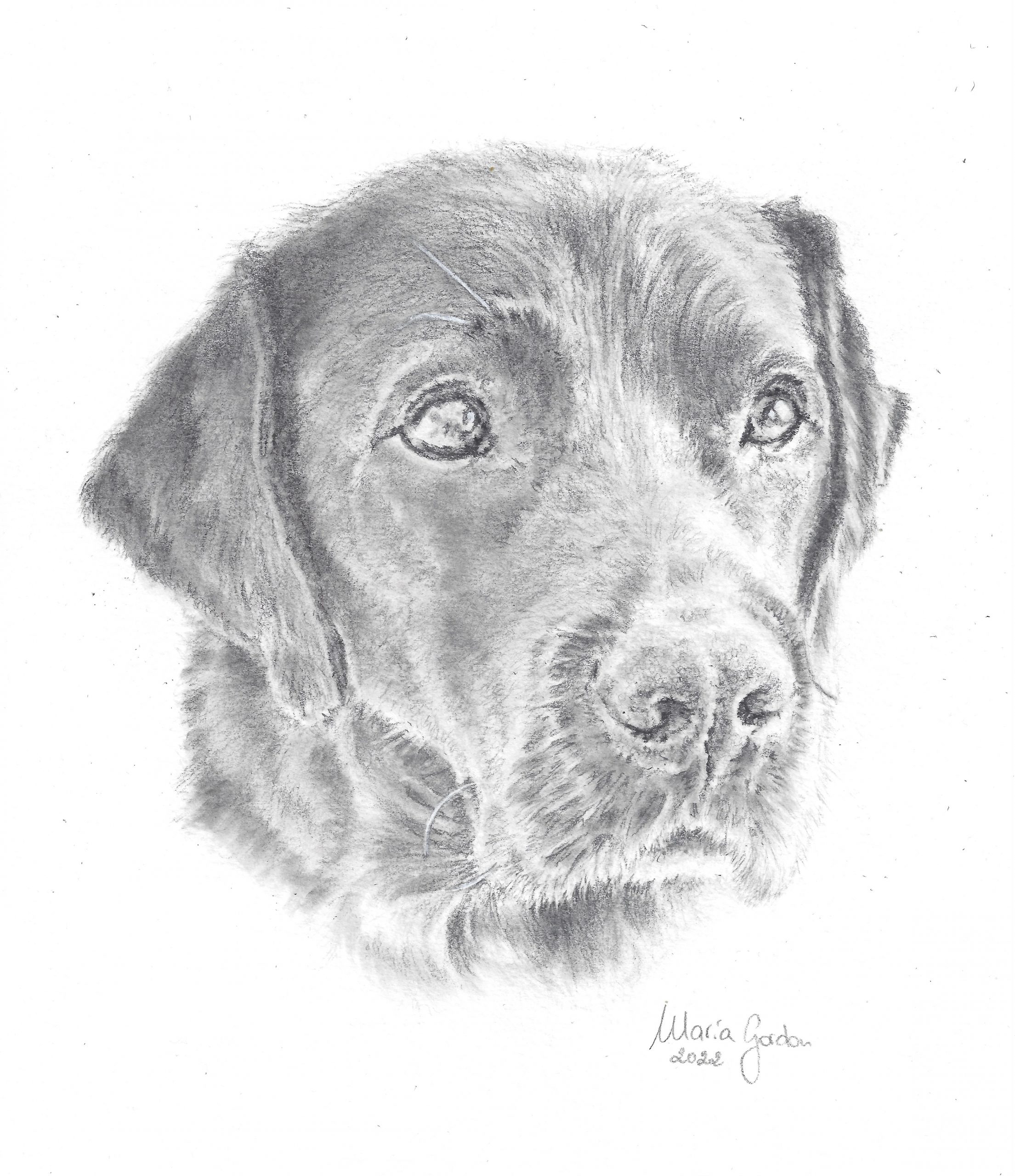 Retrato mascota lápiz grafito hecho a mano